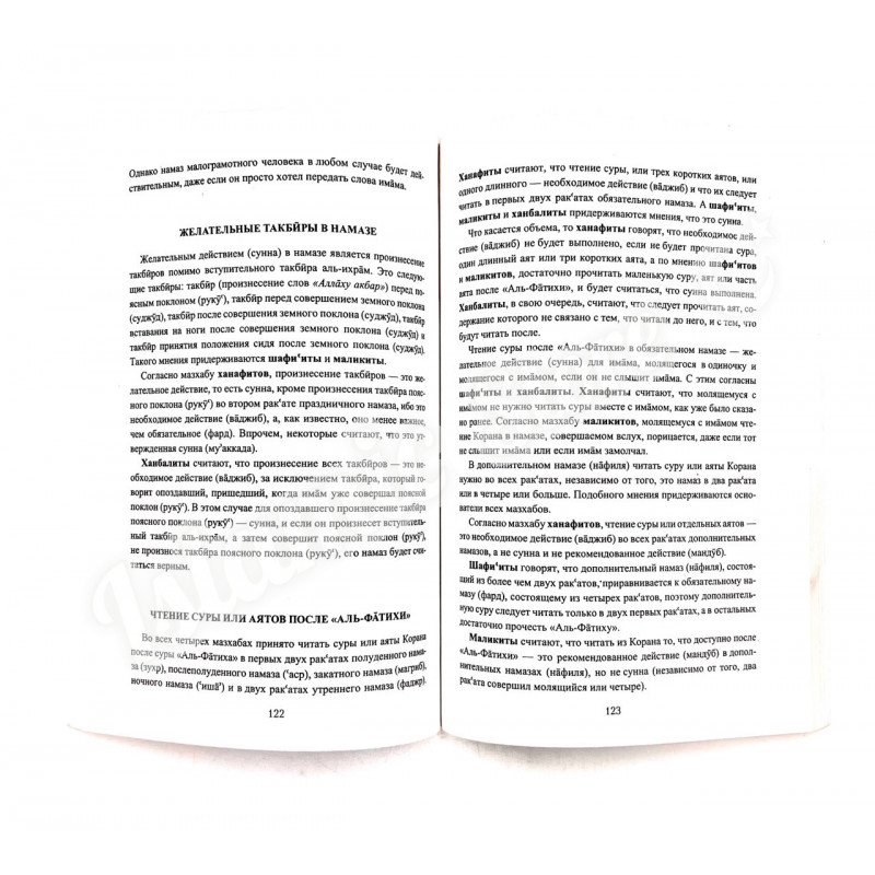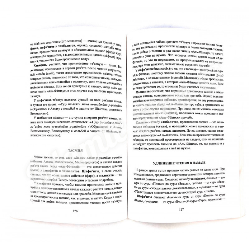 В книге, которую вы держите в руках, идет речь об особенностях совершения намазов по четырем основным мазхабам: ханафитскому, шафи‘итскому, маликитскому и ханбалитскому. Прочитав эту книгу, вы узнаете о тонкостях совершения намазов по четырем мазхабам