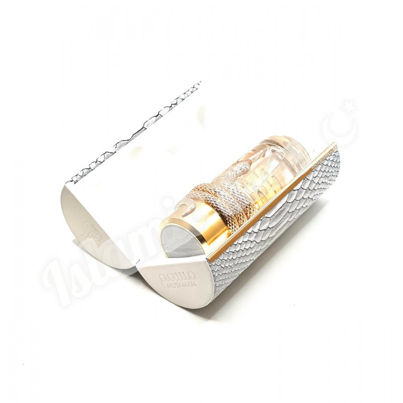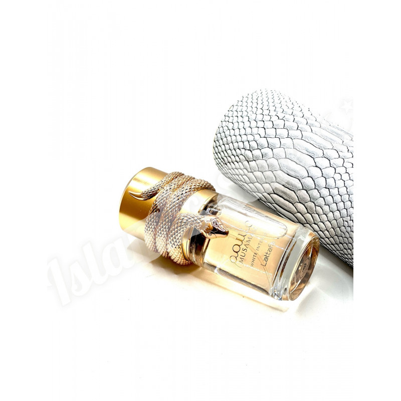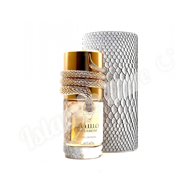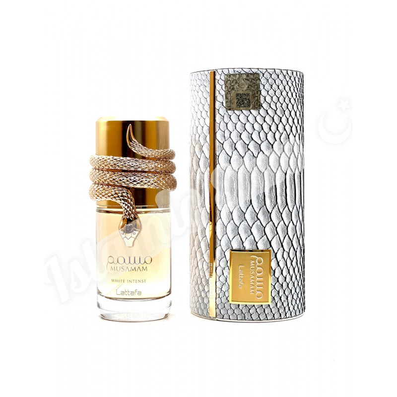 Lattafa Musamam White Intense — безупречный по своей ароматической текстуре, элегантный и стильный мускусный унисекс-парфюм с освежающими цитрусовыми оттенками, выпущенный в 2023 году арабским парфюмерным брендом Lattafa. Аромат упрятан в роскошный флакон, словно обвитый змеей, и помещен в футляр, имитирующий змеиную кожу.