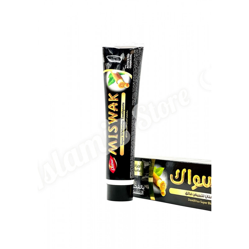 Зубная паста Dabur Miswak with Activated Charcoal с экстрактом растения мисвак и активированным углем обеспечивает полную защиту зубов и дёсен.