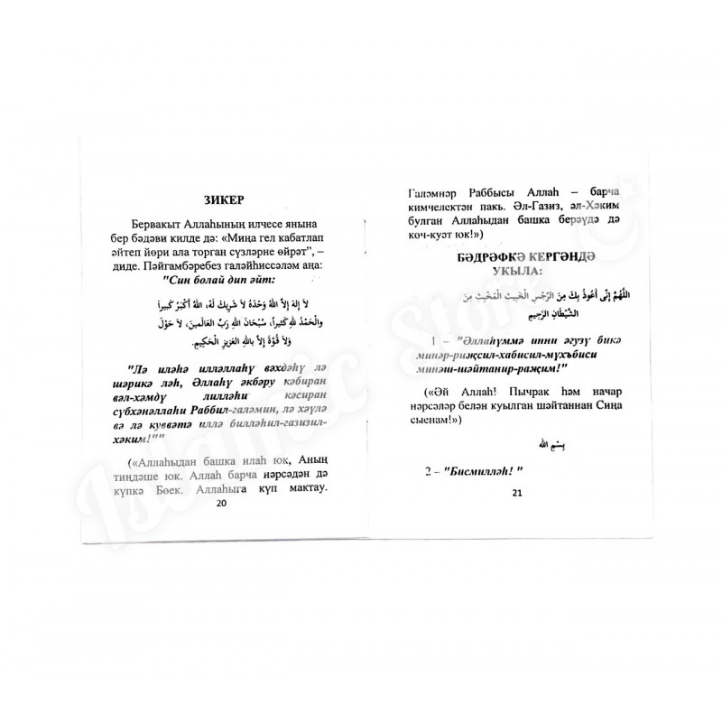 Бу кечкенә брошюра – көннең иң мөһим ике сәгатьенең: иртәңге һәм кичке сәгатьләрнең рухи байлыгын ачуга юнәлдерелгән. Анда мөселманның көн саен тормышында рухи яктан ныгып, Аллаһу тәгаләнең рәхмәтенә һәм үзәгенә ирешү юлларының берсе – сөнни гамәлгә нигезләнгән иртә һәм кич догалары турында сүз бара.