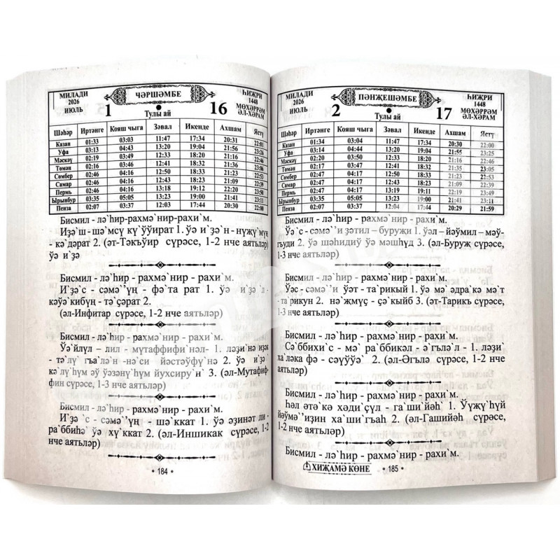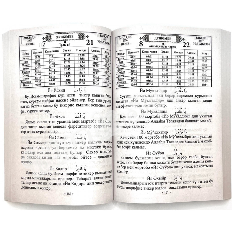 Календарь является в своем роде исламской мини-энциклопедией. Здесь представлены жизненно-необходимые молитвы и обращения, толкования отдельно взятых коранических аятов и пророческих хадисов, ответы на вопросы читателей и распорядки проведения отдельных дней и ночей, имеющих сакральный характер, проповеди и обращения и многое другое, приведено время намазов для многих городов.