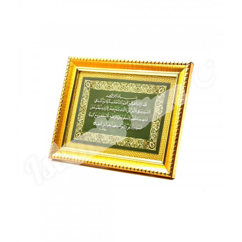 Привнесите в свой дом благословение и божественную защиту с этим изысканным декоративным панно. Величественный аят «Аль-Курси», начертанный арабской вязью на роскошном изумрудном фоне, станет духовным центром вашего интерьера и источником умиротворения для всех обитателей дома.