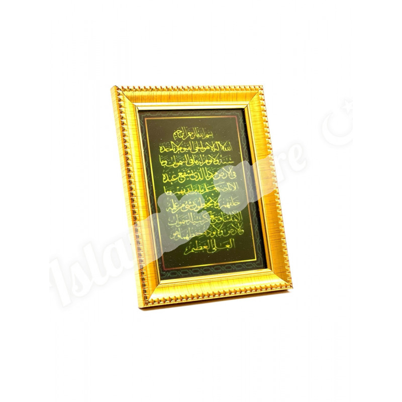Привнесите в свой дом благословение и божественную защиту с этим изысканным декоративным панно. Величественный аят «Аль-Курси», начертанный арабской вязью на роскошном изумрудном фоне, станет духовным центром вашего интерьера и источником умиротворения для всех обитателей дома.