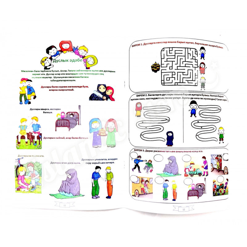 Учебник и рабочая тетрадь «Книга этикета» созданы на основе книги «Исламское воспитание. Учебник для 1–4 классов» К. Валиуллина с целью обучения детей самостоятельной работе. Они знакомят дошкольников с исламским этикетом. Каждая тема в учебнике разделена на две страницы.
