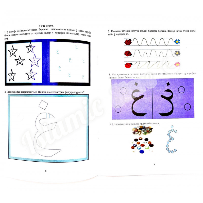 Данная книга подготовлена с учётом возрастных особенностей детей 3–4 лет и на основе норм развития речи. Основными направлениями работы стали развитие речевых навыков, знакомство с арабским алфавитом и формирование навыков письма.