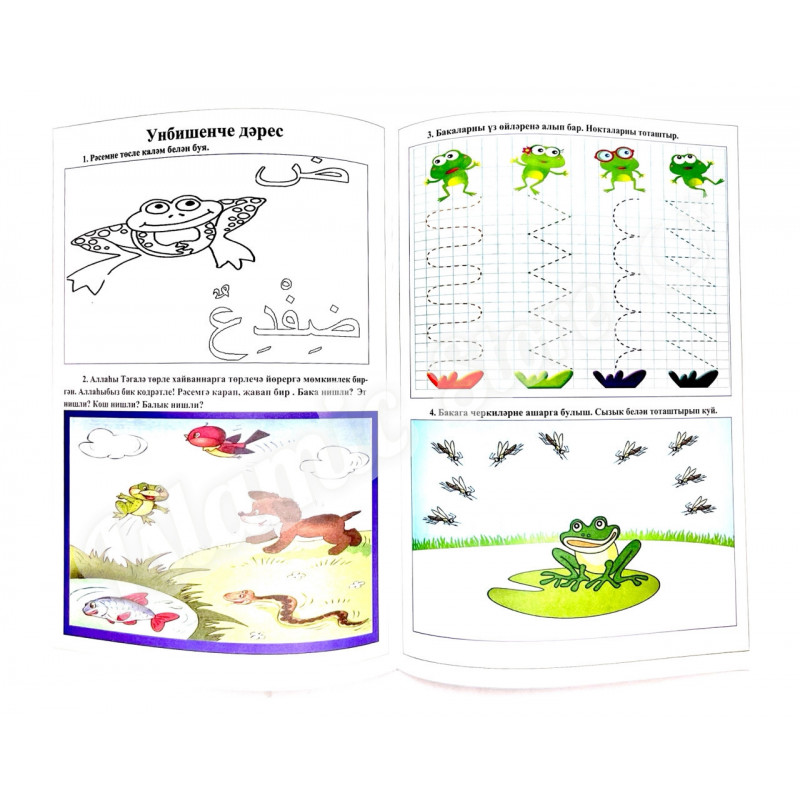 Бу китап 3- 4 яшьлек балаларның яшь үзенчәлекләрен күздә тотып, сөйләм үсеше нормаларына нигезләнеп әзерләнде. Тирә-юньне танып белү, сөйләм үсешен үстерү күнекмәләре, гарәп әлифбасы белән танышу, язу күнекмәләрен булдыру төп юнәлешләр итеп билгеләнде.