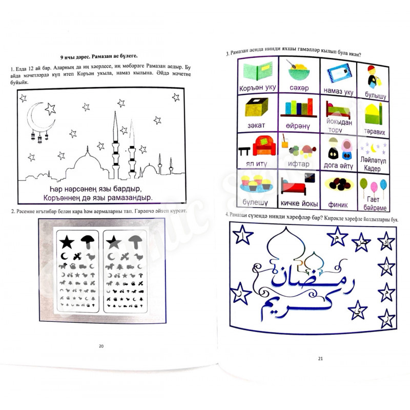 Учебник и рабочая тетрадь «Моя первая книга» созданы на основе книги К. Валиуллина «Исламские принципы» (Основы веры). Чтобы донести нашу религию до детского сердца через самые прекрасные примеры, мы считаем удобным разделить каждый урок на 4 части, чтобы использовать различные средства в работе.