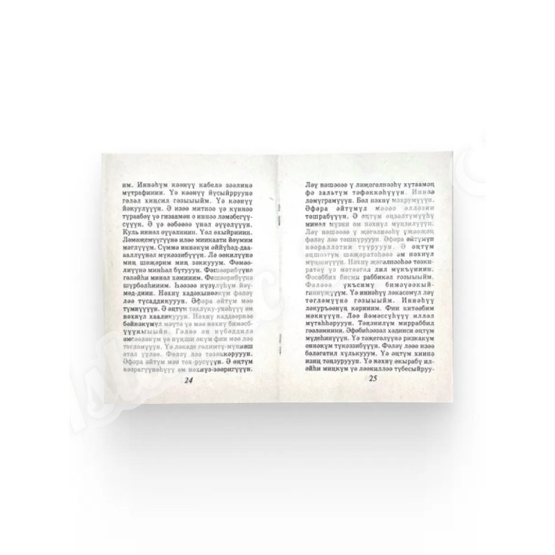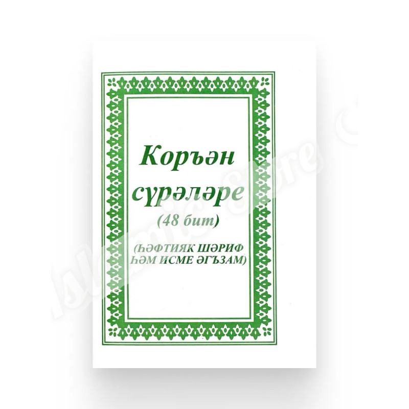 Небольшая карманная брошюра на татарском языке с наиболее часто читаемыми сурами из Священного Корана и дуа с Великими Именами Аллаха.