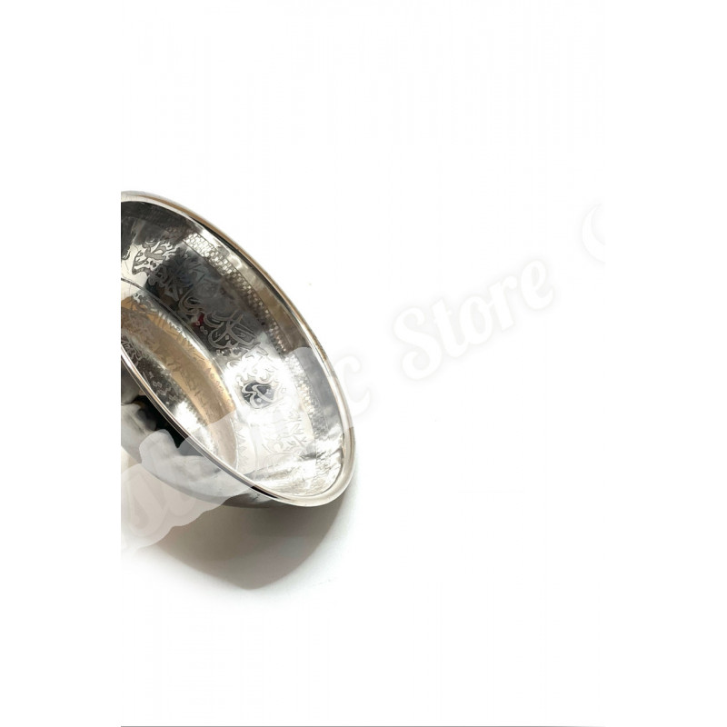 Искусно выполненная пиала, сочетающая в себе изящество традиционной формы и глубокий духовный смысл. Внутренняя поверхность изделия украшена арабской вязью. Этот священный текст, обрамляющий внутреннее пространство пиалы, наполняет её особым благословением.