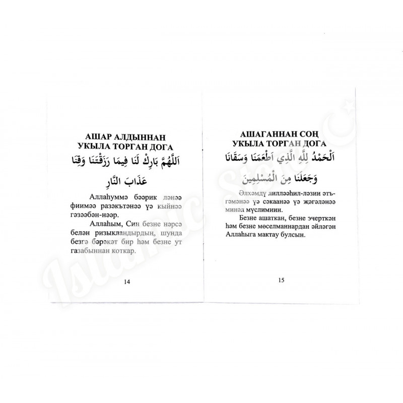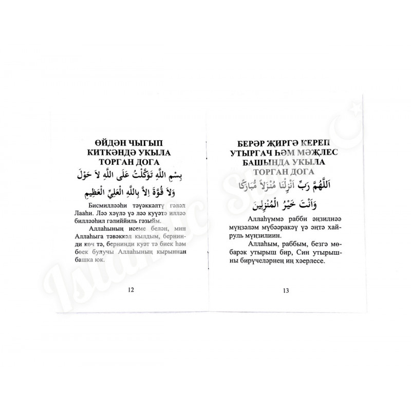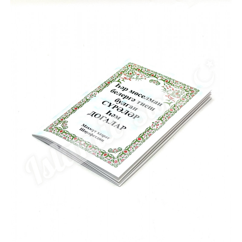 Карманная брошюра на татарском языке, в которой собраны наиболее часто читаемые суры из Священного Корана (на арабском языке с татарской транслитерацией и переводом на татарский язык) и некоторые жизненно полезные дуа, приносящие мир и милость читающему их.