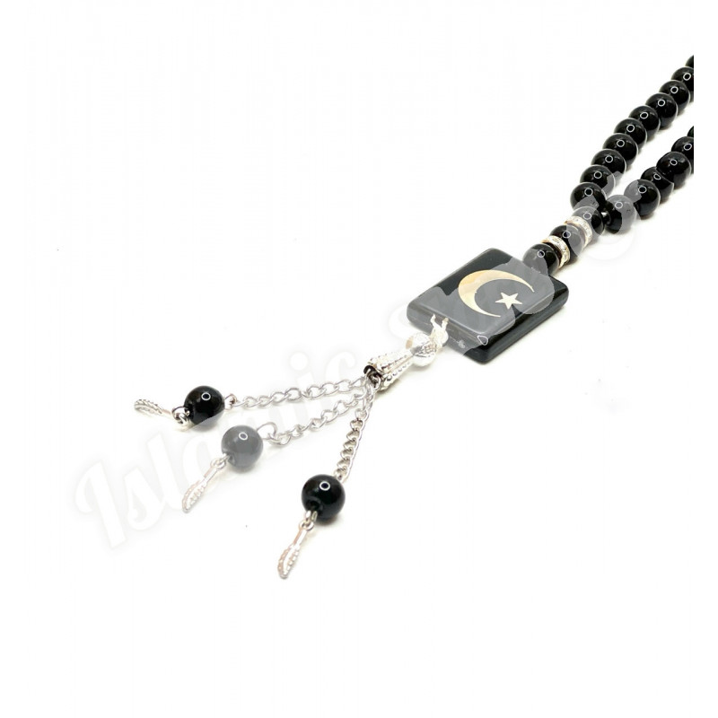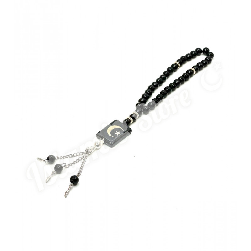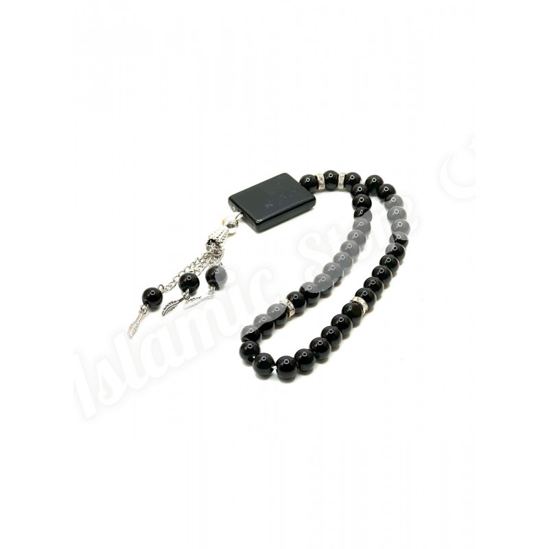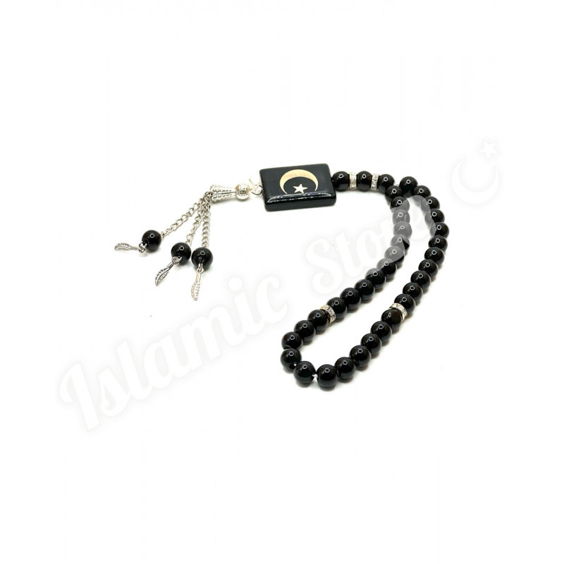 Эти элегантные четки сочетают в себе традиционную символику и современный дизайн. Модель выполнена в строгом черном цвете, что подчеркивает ее утонченность и универсальность. Четки станут не только инструментом для зикра, но и стильным аксессуаром, отражающим вашу веру и чувство вкуса.