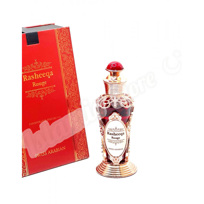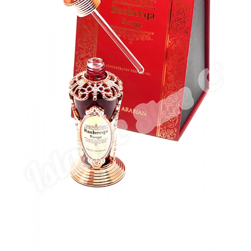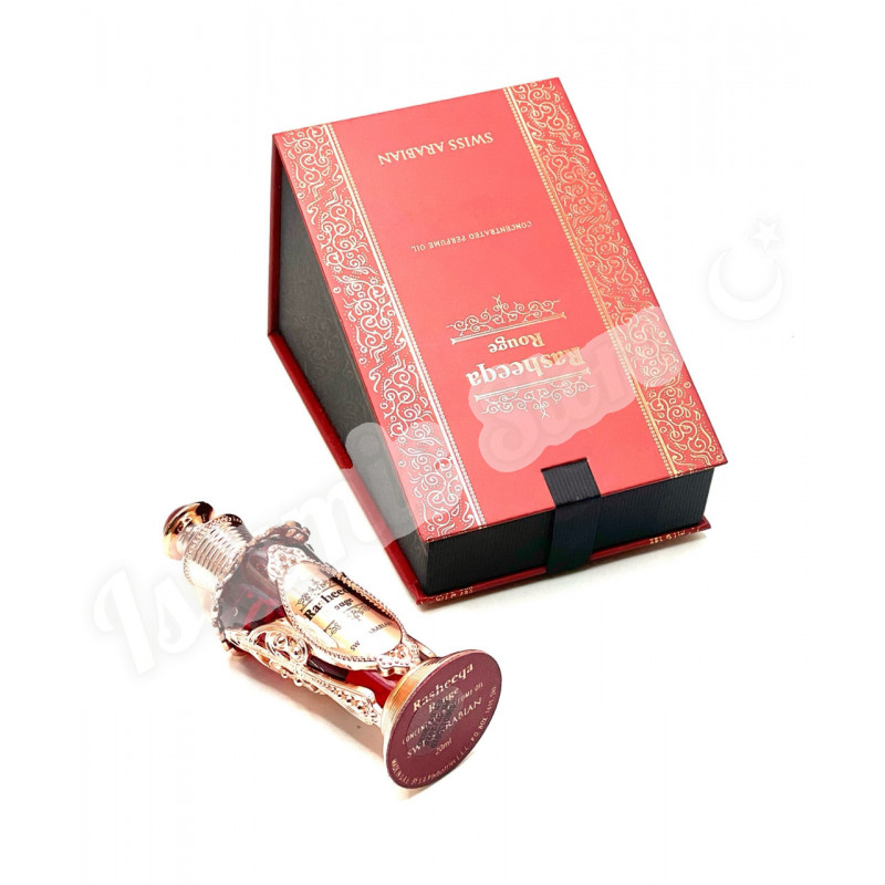 Аромат Rasheeqa Rouge вдохновлён глубоким эмоциональным искусством, популярным направлением, укоренённым в современной культуре, на которое оказали большое влияние музыка и лирическое наследие новой цивилизации. Это клип, состоящий из песен и танцев с энергичными жестами, сопровождаемый игрой на гитаре, где речь идёт о психологических переживаниях и личных наклонностях. Сухой, пряный и лёгкий аромат красной розы с прекрасным сочетанием восхитительных фруктов и роз с нотами сосны и изысканной амбры.