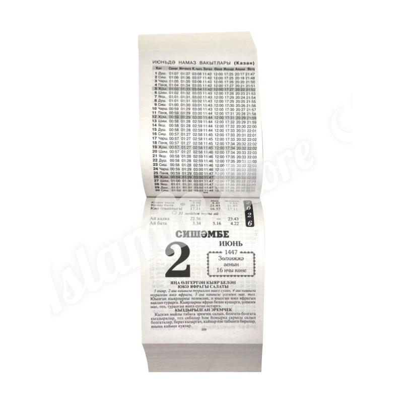Календарь матур, милли бизәкләргә бастырылып, гаиләдә һәрбер әгъза өчен зиннәт булачак. Ул вакытны оештырырга, киләсе бәйрәмнәргә әзерләнергә һәм балаларыгызга татар мәдәниятен танытырга ярдәм итәчәк.
