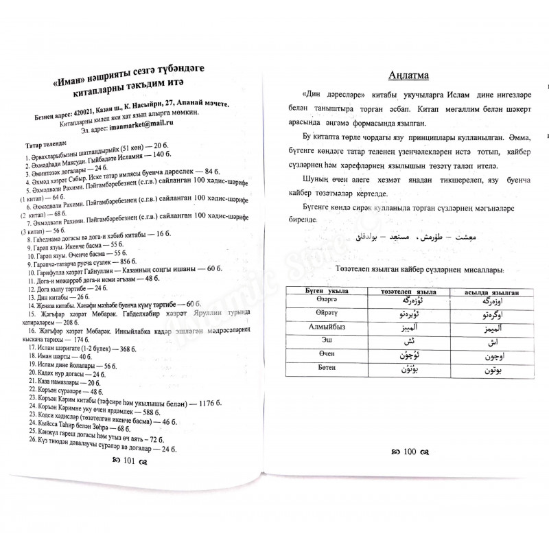 Чтобы избавиться от этих неудобств, была переработана и подготовлена для читателей книга Сунгатуллы Бикбулатова «Уроки религии» (I век), основанная на трудах Ахмадхади Максуди «Учитель прежде всего» и Фатиха Садыкова «Правила письма».