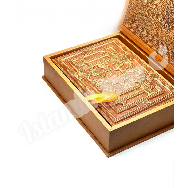 Он поставляется в специальном подарочном боксе-футляре, который подчёркивает исключительность содержимого и обеспечивает его вечную защиту. Этот Коран создан, чтобы стать главной духовной и эстетической ценностью в вашем доме или самым значимым подарком для особенного человека.