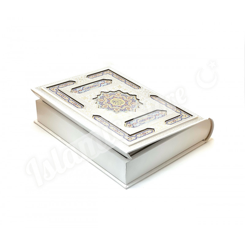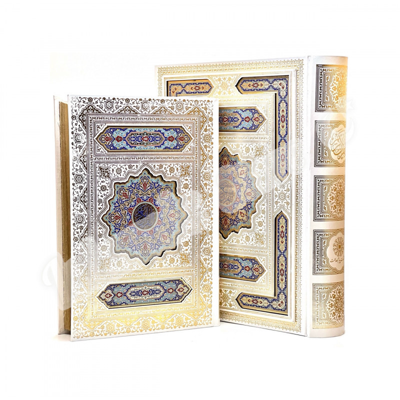 · Дизайн: Белоснежный переплёт с художественной росписью восточными узорами и инкрустацией.