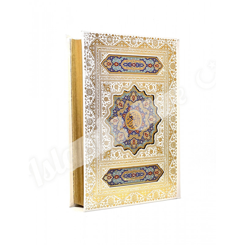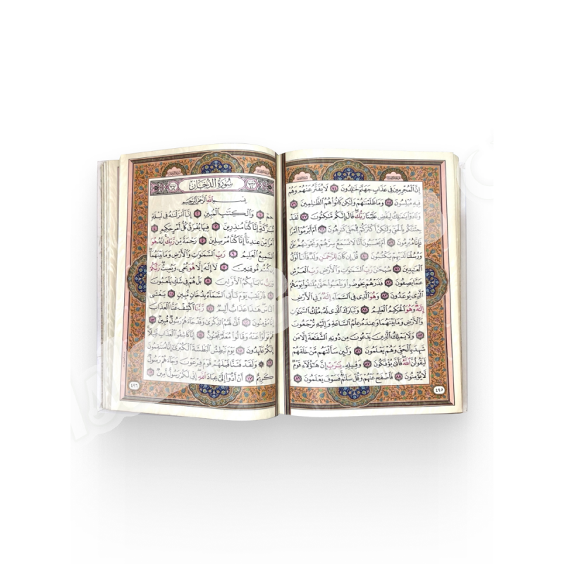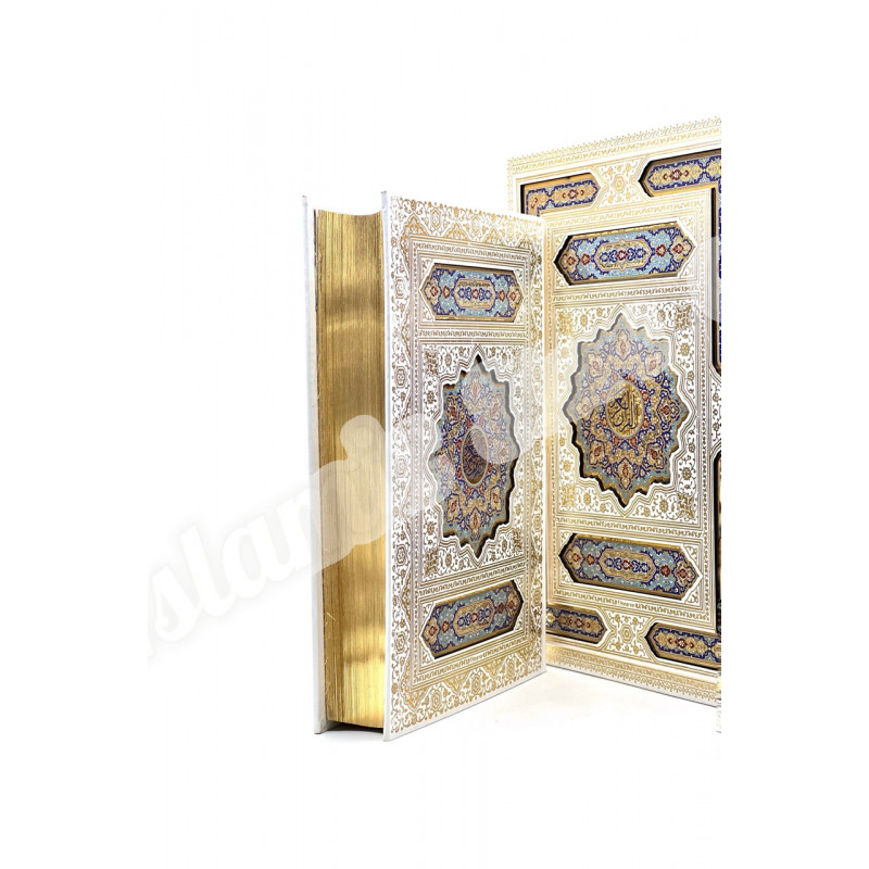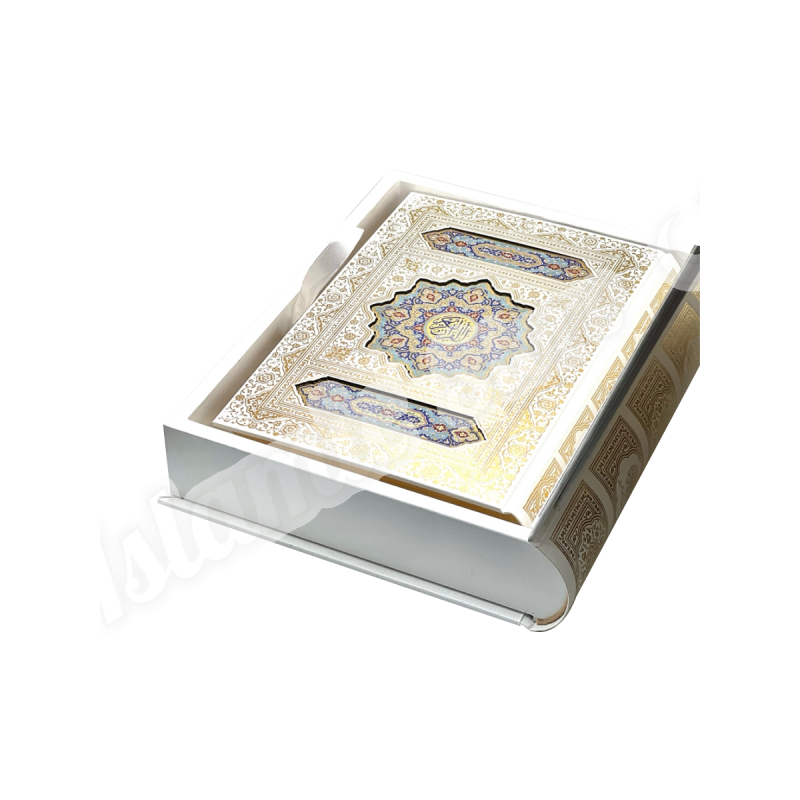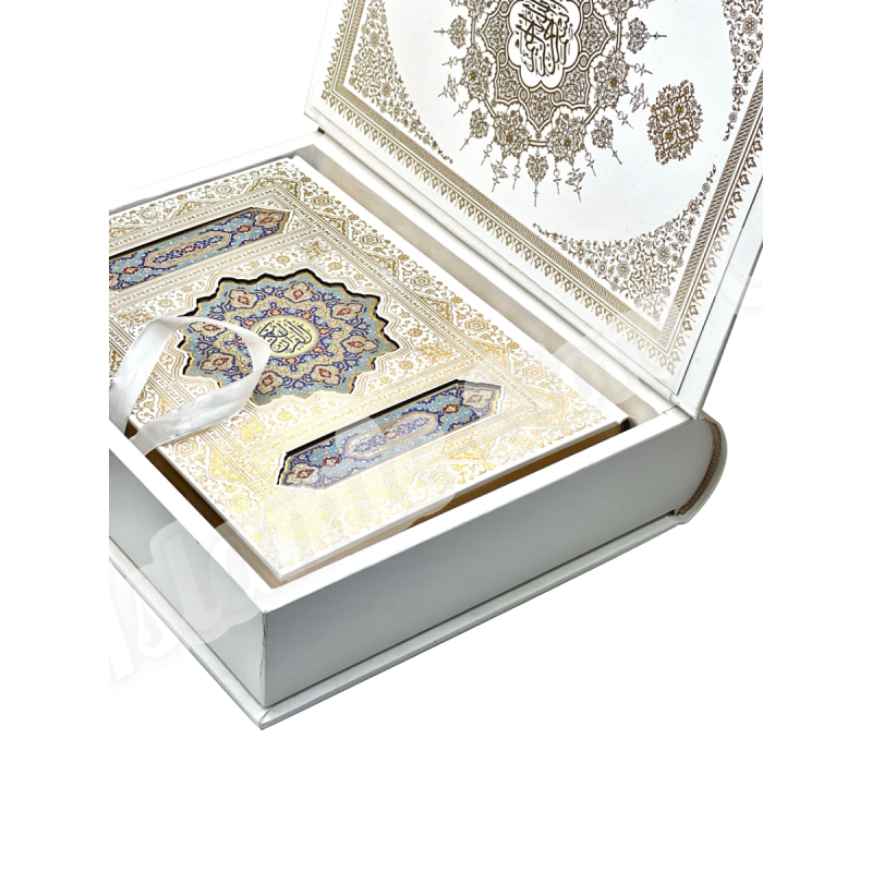 Это не просто Коран. Это — мультисенсорное произведение искусства, созданное для истинных ценителей исключительного. Его прекрасные страницы, оттенённые изысканными восточными узорами, пропитаны эксклюзивным парфюмерным составом. Каждое прикосновение, каждый перелист страницы выпускает в воздух тонкий, благородный и долгий шлейф благовоний, превращая процесс чтения в подлинное духовное блаженство.