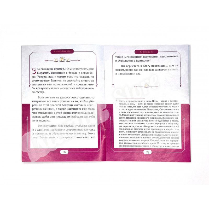 Вашему вниманию предлагается перевод двух наиболее известных и востребованных читателем статей шейха 'Али ат-Тантави «О мой сын» и «О моя дочь», написанных автором в далёком 1953-ем году, но нисколько не потерявших своей актуальности и по сей день. В своих статьях автор затрагивает острую проблему моральной деградации общества и глубину его разложения в некогда исламских странах, а также описывает тяжелейшие последствия этого упадка, выявляя его первопричины.