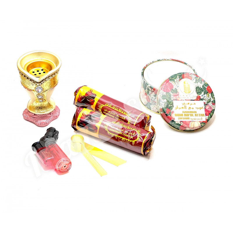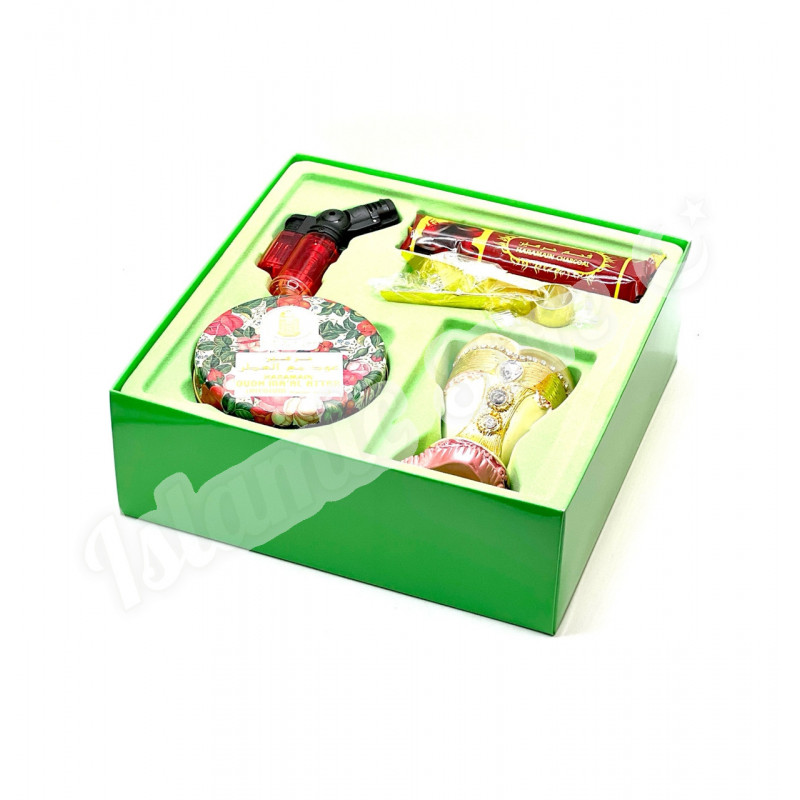 · Элитный бахур «Oudh Ma'al Attar» в металлической банке: Насыщенная, аутентичная композиция ароматного арабского уда с благовонными маслами, сохраняемая в презентабельной упаковке.