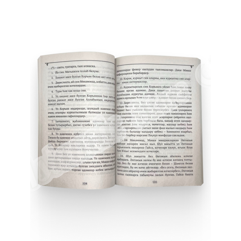 Коръән Кәрим Аллаһы Тәгалә тарафыннан Пәйгамбәребез Мәхәммәд салләллаһу галәйһи вә сәлләмгә 23 ел дәвамында билгеле вакыйгаларга карап бүленеп-бүленеп иңдерелгән Мөбәрак Китап.