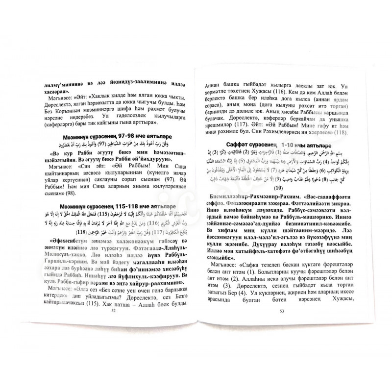 · Техника: Ачык аңлатмалар һәм дога текстылары белән тәкъдим ителгән.
