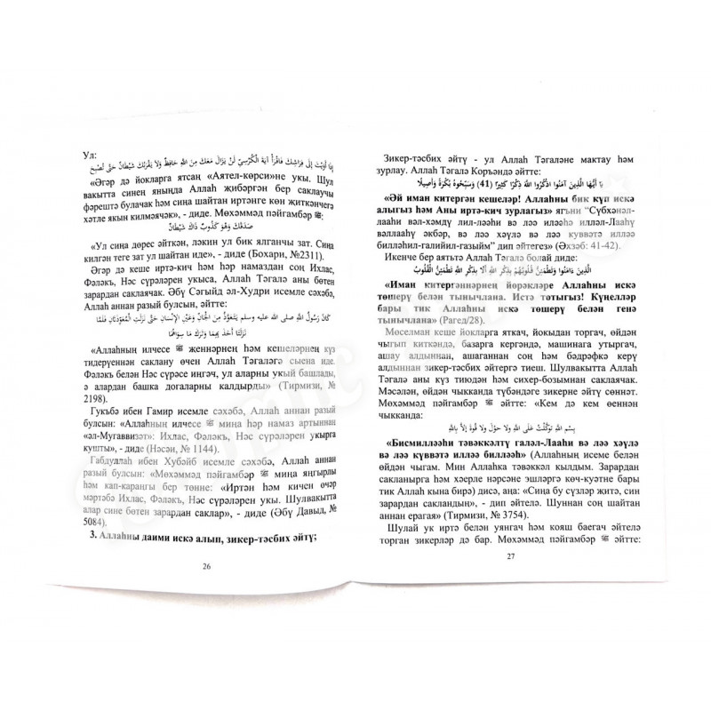 · Файда: Рухи һәлакәтләргә каршы көчле һәм расланган Коръән-сөннәт догалары белән танышу.