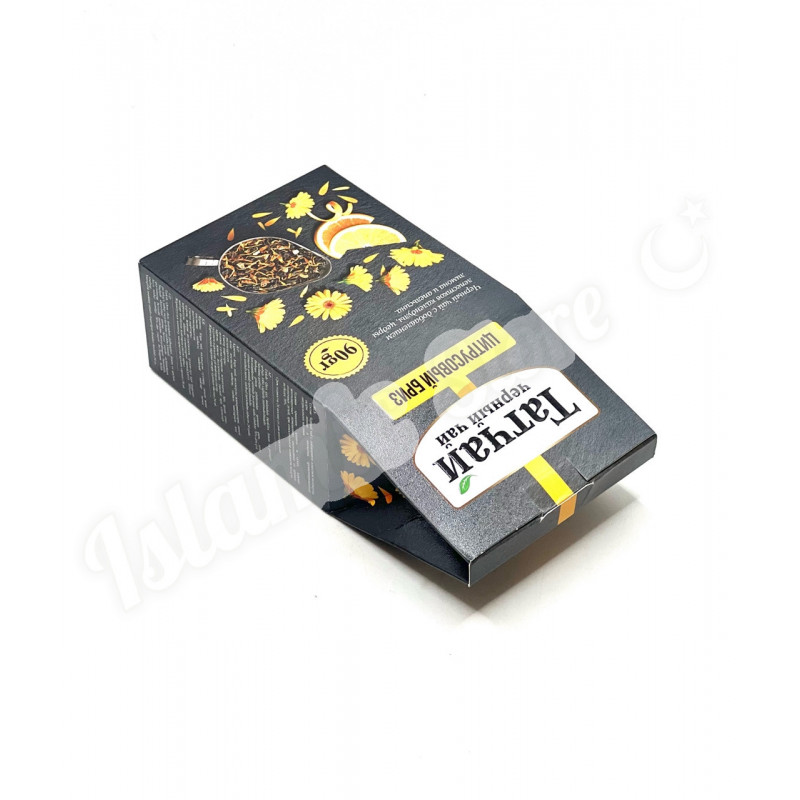 Состав: Черный чай с добавлением лепестков календулы, цедры лимона и апельсина, ароматизированный натуральными маслами