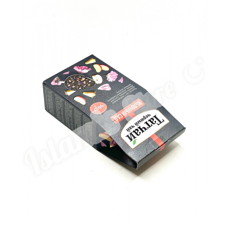 Состав: Черный чай с добавлением цукатов ананаса, кусочков яблока, лепестков шафрана, цветков мальвы, ароматизированный натуральными маслами