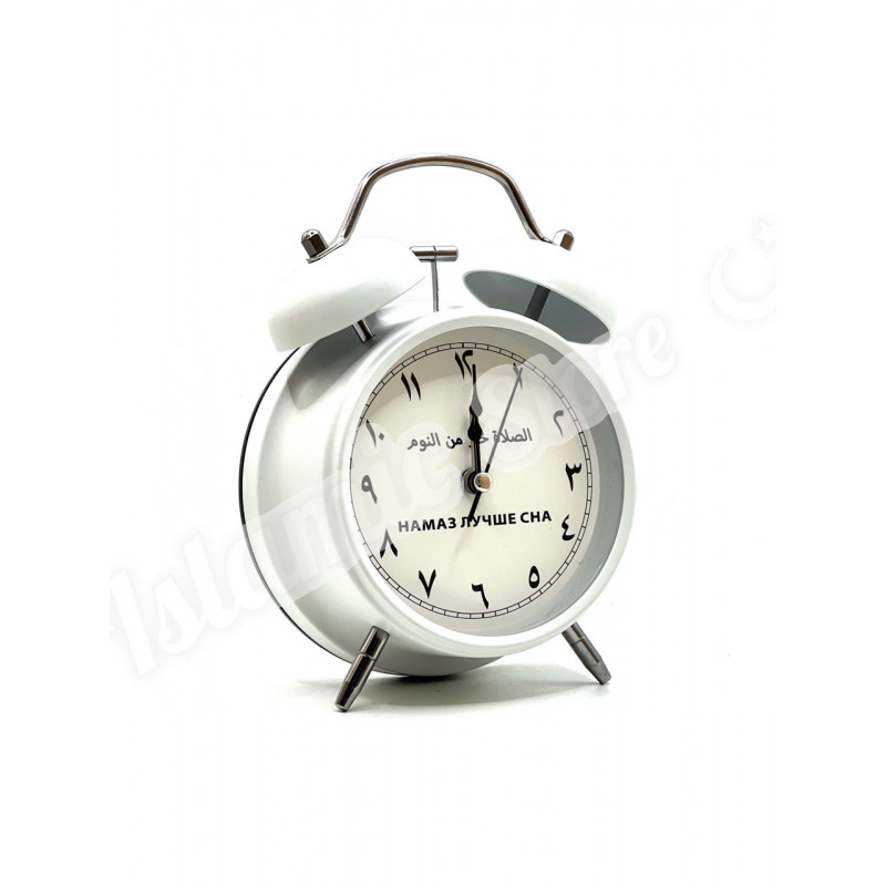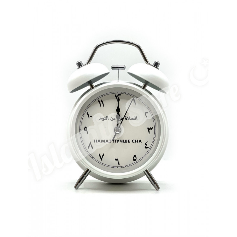 Главная особенность циферблата — арабские цифры, которые органично вписываются в дизайн и создают восточный колорит. А под ними — напоминание на русском языке: «Намаз лучше сна». Каждое утро этот будильник не просто будит, а напоминает о самом важном — о пробуждении не только тела, но и души.