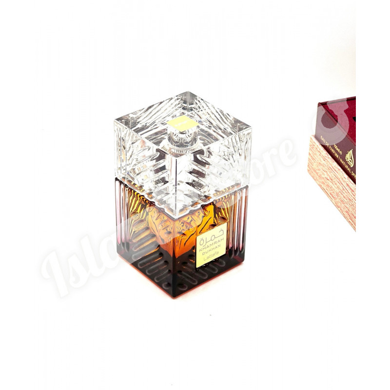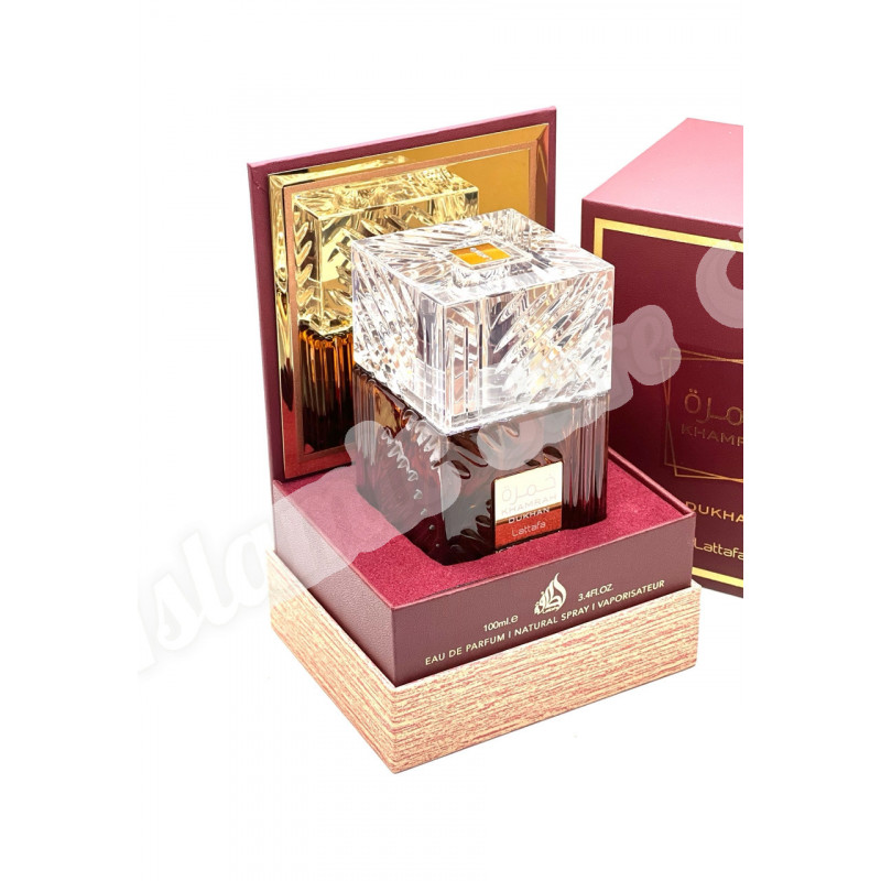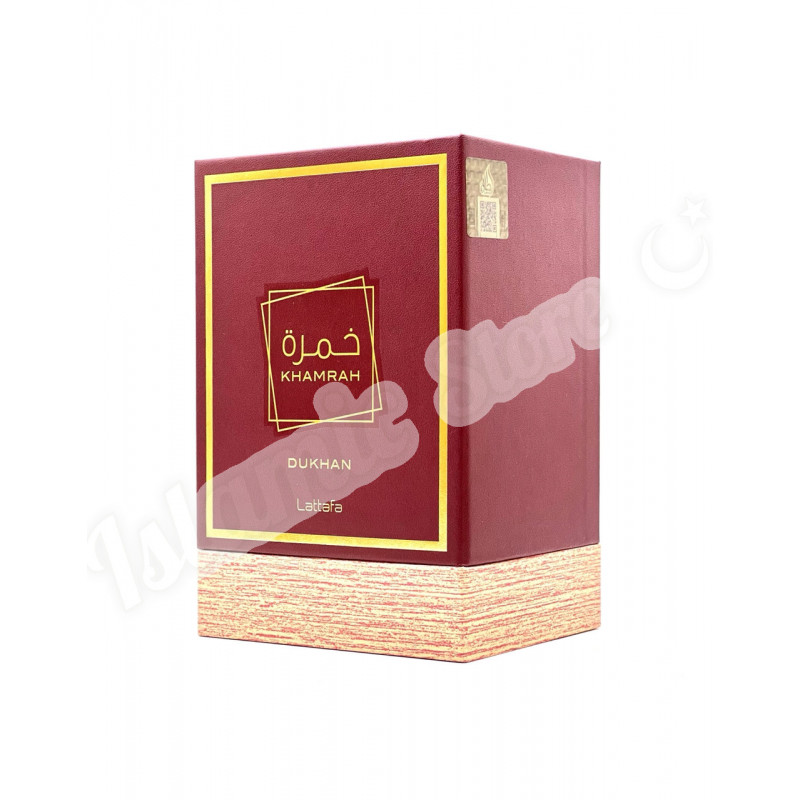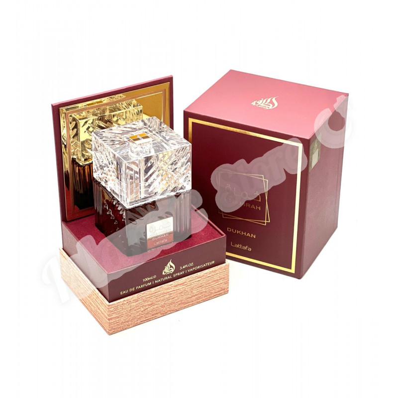 Lattafa Khamrah Dukhan — загадочный и самобытный восточный унисекс-аромат, выпущенный в 2025 году арабским парфюмерным брендом Lattafa. Аромат вдохновлен ближневосточной традицией сжигания ароматических материалов и получил название от арабского слова «Dukhan», что означает дым. Он призван отразить красоту этой древней практики, превратив ароматный дым в изысканный парфюм.