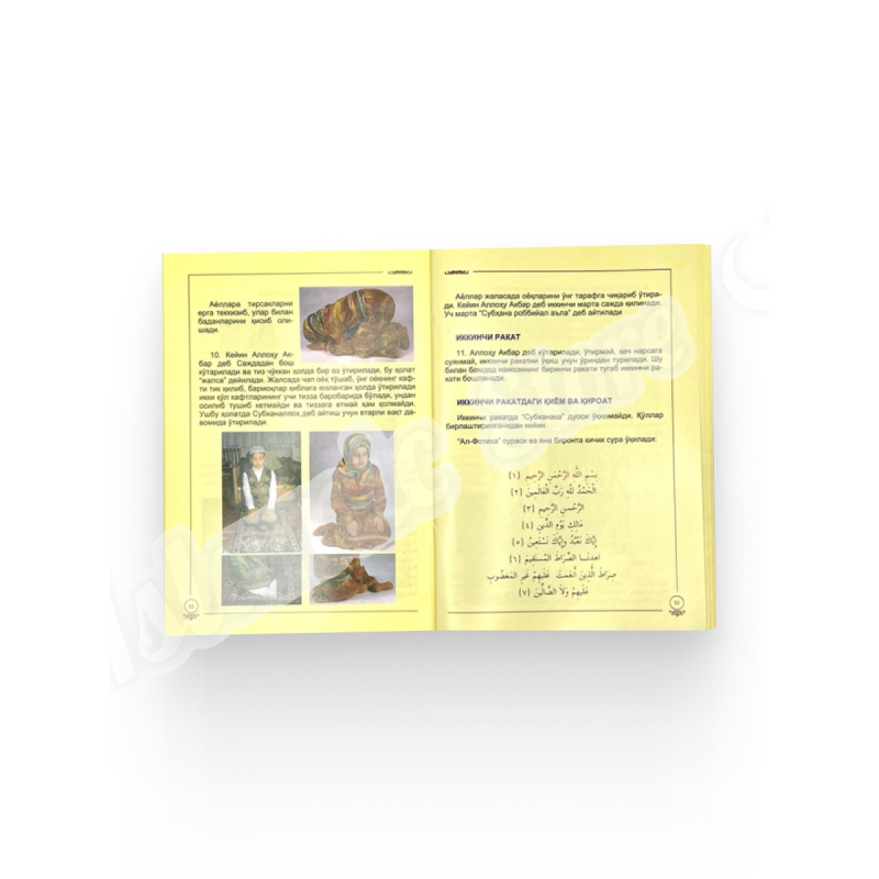 Ушбу қўлланма Исломда янги бўлганлар ва болалар учун мўлжаллан. Унда таҳорат, ғусул ва намозни адо этишнинг барча қоидалари батафсил ва тушунарли тарзда ёритилган. Ҳар бир қадам одий тушунтиришлар билан ёритилган бўлиб, рангли расм ва схемалар материални ўзлаштиришни осон ва тушунарли қилади.