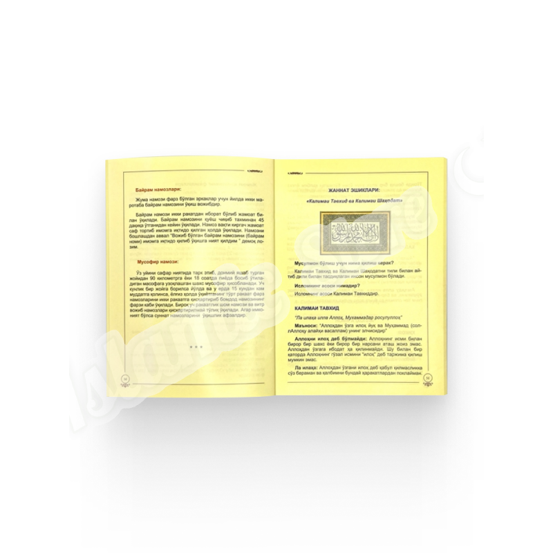 Брошурани мадрасаларда, Ислом курcлари ва оила доирасида фойдаланиш мумкин. Ушбу рангли қўлланма тўғри ва ихлосли намоз адо этишингизда ишончли ёрдамчингиз бўлади!
