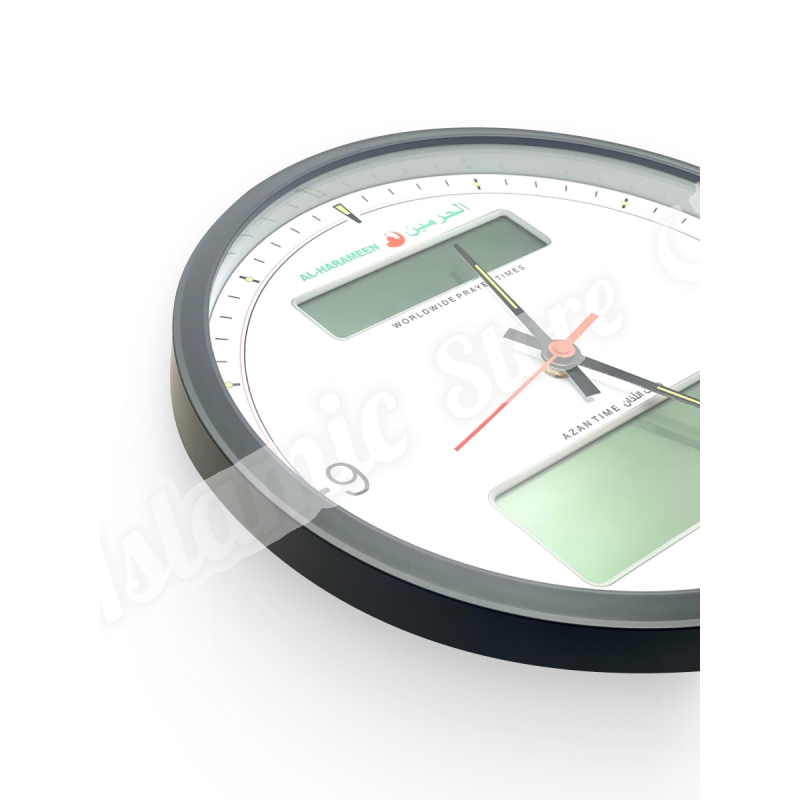 Эти круглые настенные часы от известного бренда Al-Harameen сочетают в себе классический дизайн и современные исламские функции, становясь не просто измерителем времени, а верным помощником в соблюдении намаза .