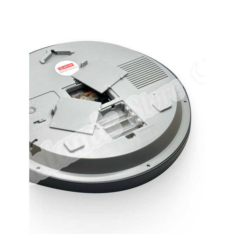Круглый корпус впишется в любой интерьер — от дома до офиса или мечети . Питание осуществляется от стандартных батареек, а яркий дисплей обеспечивает отличную читаемость в любое время суток .