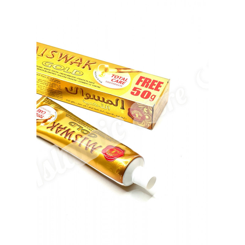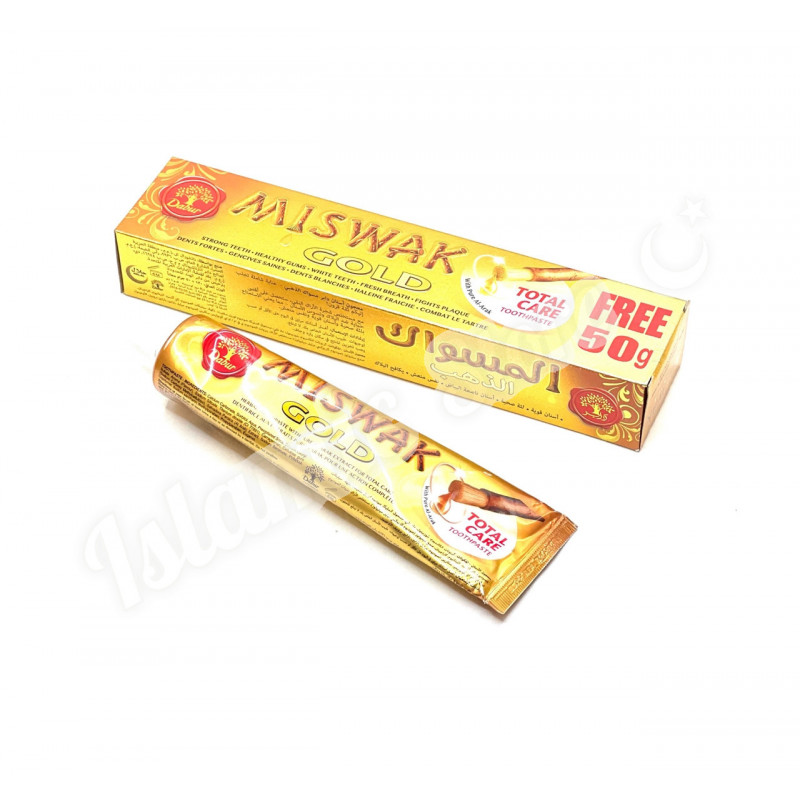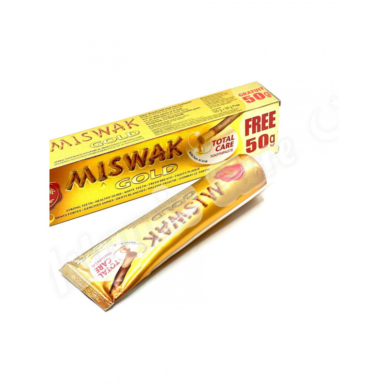Аюрведическая зубная паста «Miswak» фирмы Dabur (произведена по лицензии в АРЕ) , предназначена для чистки зубов и массажа дёсен. Вяжущие и бактерицидные свойства зубной пасты «Miswak» сокращают кариес зубов, защищают дёсна, предотвращают болезни зубов, создают приятный запах во рту, оставляя сладкий привкус аниса. «Miswak» содержит естественные травянные ингридиенты. Не содержит фтор.